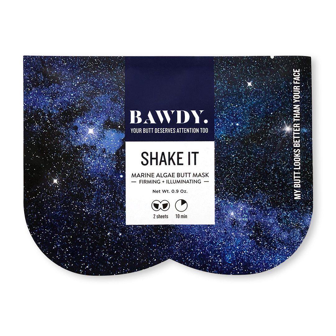 Shake It - Firming + Illuminating Marine Algae Butt Mask: helps combat gravity and perfect the appearance of your skin. It is formulated to tone and help contour your butt, leaving it taut and smooth. This natural sheet mask gives your butt a glow and sculpts your cheeks.