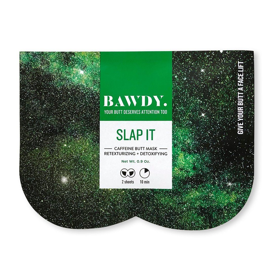 Slap It - Retexturizing + Detoxifying Caffeine Butt Mask: helps combat gravity and perfect the appearance of your skin. It is formulated to tone and help contour your butt leaving it taut and smooth. This natural sheet mask helps improve the appearance of skin texture and tone.